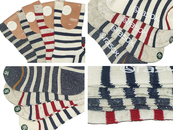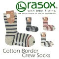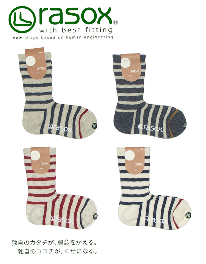 rasox コットンボーダークルーソックス 足に優しくフィットするL字型のソックスです。 |