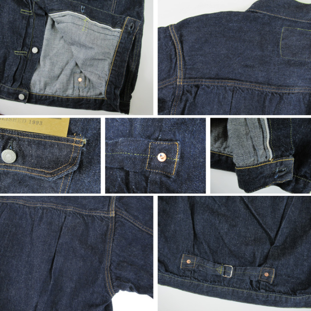 | フルカウント1stタイプデニムジャケットです。11.5ozとういうウェイトでありながらヴィンテージ特有の表情を再現、 超低速の織りによって甘撚りの糸の膨らみを保たせている為、オンス以上の生地感を出しています。 力織機を知り尽くした職人の膨大な経験があってこそ可能にした他に真似できないデニムとなりました。 |