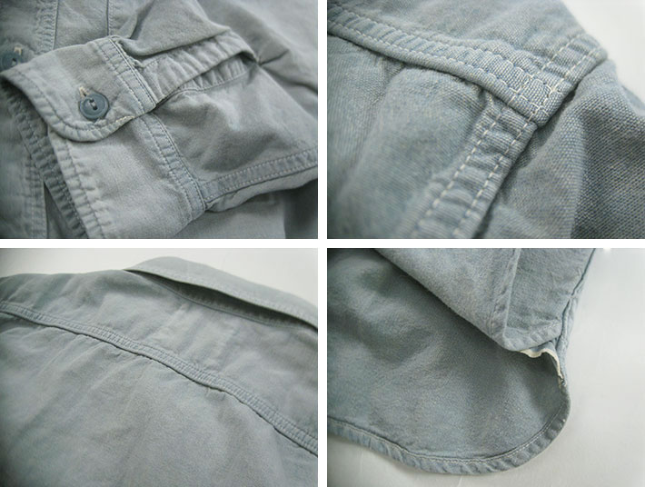 | 40年代のUSNシャンブレーを徹底的に分折し、再現した素材を用た定番シャンブレーシャツの加工モデルです。Wステッチの間隔、運針ピッチ、下糸の色合わせなど綿密にアップデートすることで究極のシャンブレーシャツとなっており、着込むごとにその魅力が増し、ストレスを感じない最高の着心地はもちろんのこと体感していただけます。今回の加工モデルは、ヴィンテージを彷彿させるかのような3個所のスタンプと全体的にフェードしたカセ染め独特の色合いは、フルカウントオリジナル生地でしか表現できない風合いとなります。 |