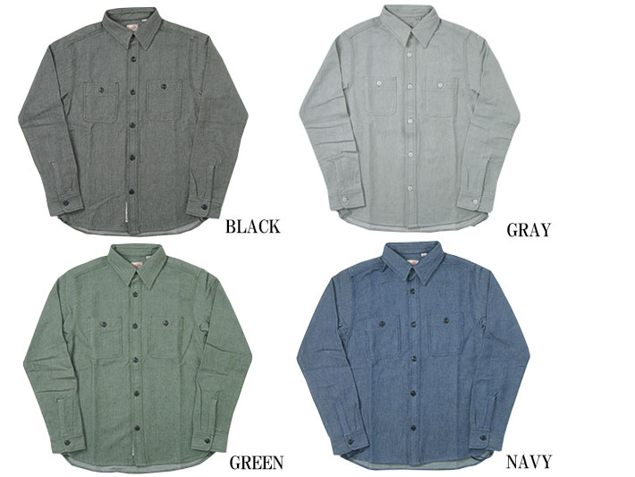 | HOUSTONの毎年人気ビエラワークシャツです。着応えある厚手のビエラ生地にユニオンチケットやネコ目ボタン、空環仕上げなど細部もヴィンテージライクな仕様となっています。トリプルステッチで強度もある仕上がり、飽きの来ないソリッドカラーは幅広く着回しもできるお薦めアイテムです! |