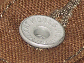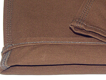 | 頑強な3本針のトリプルステッチ縫製。 | 前ポケットの袋地にはスタンプマーク。 |