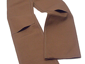 | ベルトループの下側はベルトに挟み込み。ガッチリ強度を確保しています! | 補強布を張ったダブルニー仕様です。 |