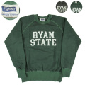 | 1960~70年代頃を感じさせるミニ裏毛仕様のラグランスウェットシリーズ。 ロングシーズンで着用可能な軽さのある生地を使用。 今季は生地の表面だけを染めるピグメント加工を施し、古着のような自然なフェード感を表現。 プリントデザインは、架空の大学"RYAN STATE COLLEGE"をイメージ。 プリント後に再度加工を入れることによって、一体感のあるヴィンテージらしさを演出しました。 |