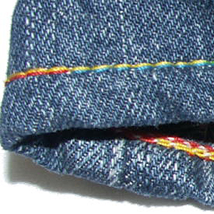 他店で購入したジーンズを、チェーンステッチで裾上げしていただきました。