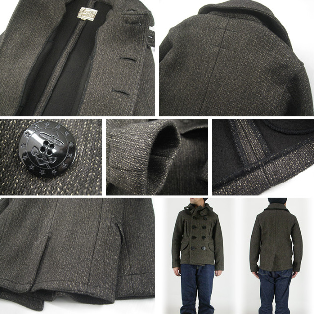 ブラウンズビーチPコートです。30年代のUS NAVYで採用されていた10ボタンのP-COATをモチーフにして作成。やや短めの丈にハンドウォーマーポケットとフラップ付きのポケットが付きます。