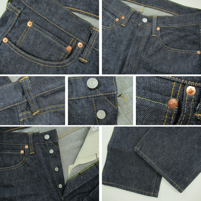 ・リジッド:糊付けされた状態の未洗デニム。穿き込む事により色落ちし、 自分だけの色落ち・シワを一から育ててお楽しみいただけます。 |
