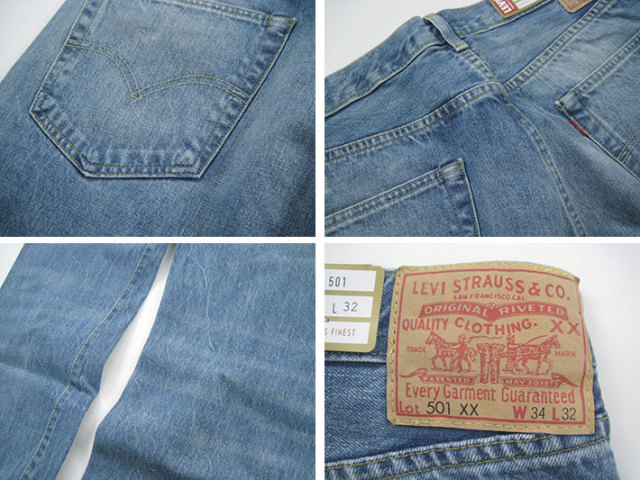 501XX 1955年モデルのユーズド加工モデルです。全体的に色落ちした鮮やかなライトブルーカラーが印象的。ナチュラルな仕上がりのユーズドライクデニムです。 55年モデルは”バナナイエロー”と呼ばれる黄色の糸を使った『ダイヤモンドポイント』入りのアーキュエイトステッチや片面から両面刺繍に変わった当時のレッドタブ、『Every Garment Guaranteed(すべての商品の品質を保証)』のコピーの入った初期型ペーパーパッチ、赤耳付きウォッチポケット等、当時のディティールを再現しています。